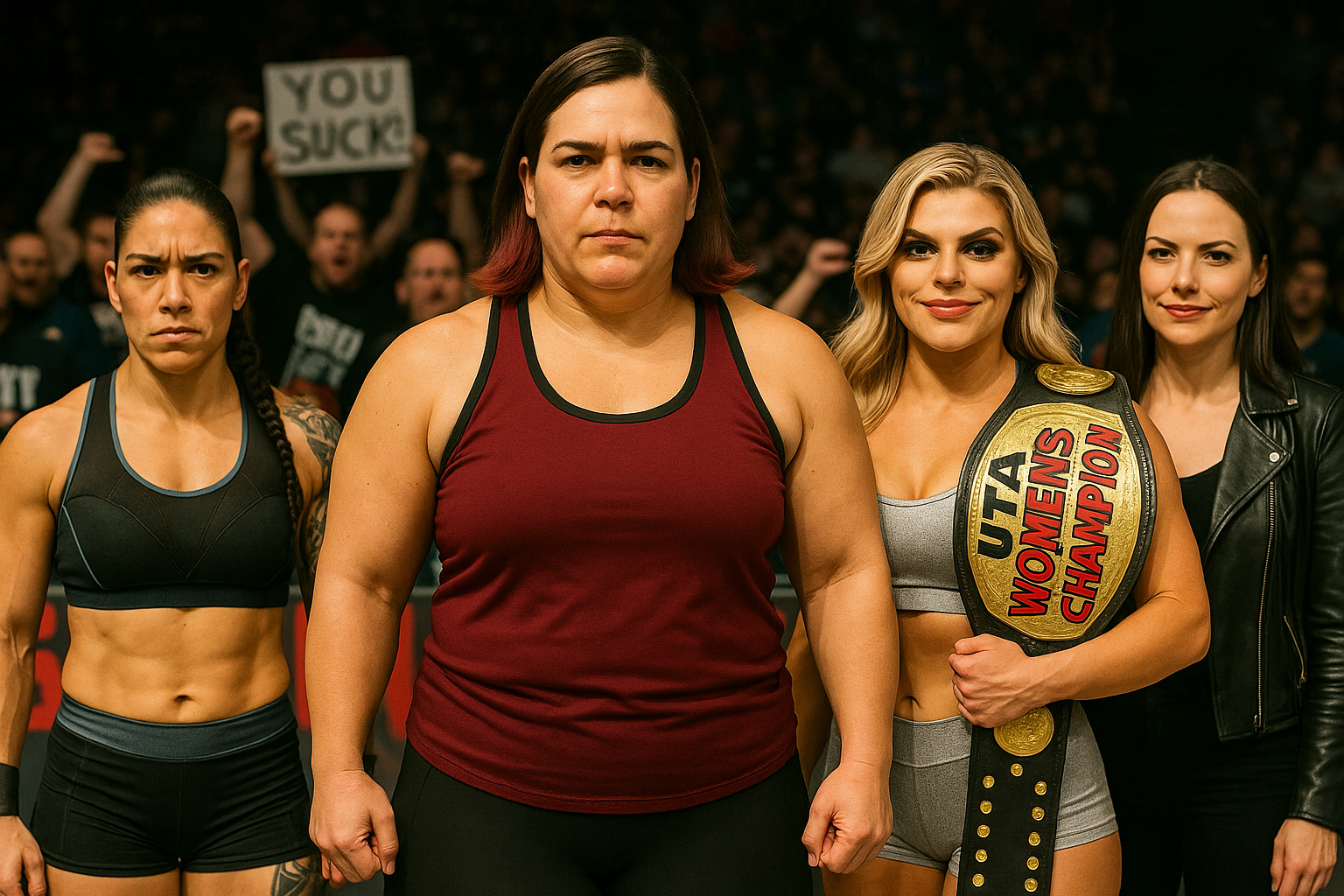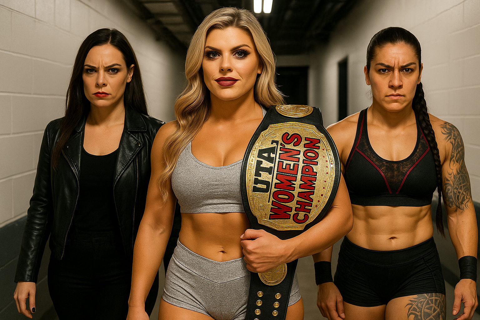 Every camera in the building finds her face, and every shot tells the same story. The eyes of Amy Harrison blaze with self-adoration. The posture of her body radiates arrogance. She is not rushing, she is not pandering, she is not celebrating with the fans — she is demanding acknowledgment, commanding reverence. In this moment, Amy Harrison is not simply the UTA Women’s Champion… she is its Empress, and this arena is her throne room.